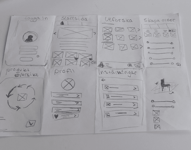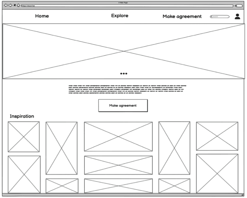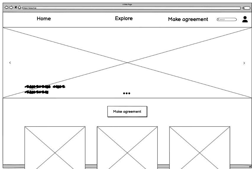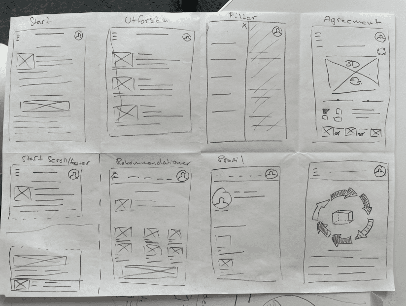 To continue, we started ideation with Crazy 8, which helped us rapidly explore different ways to combine inspiration, education and the agreement flow. Based on these sketches, we developed two early concepts with different structures.