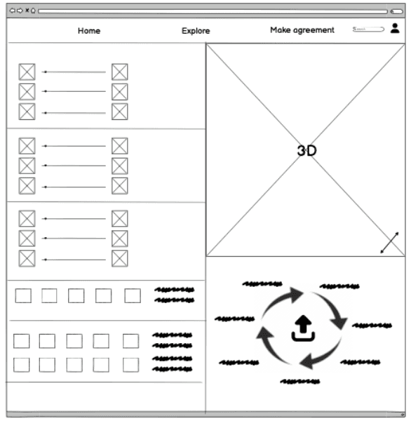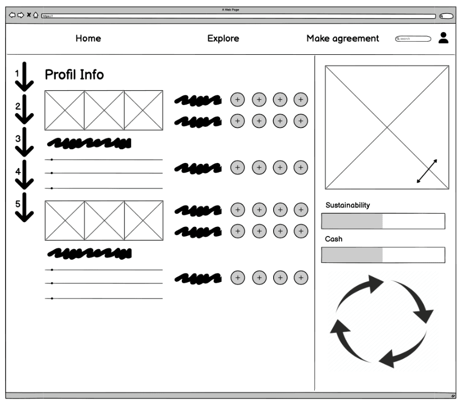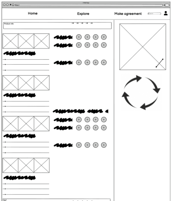 To meet these painpoints and to structure this complex domain, we developed a sitemap with four main areas: Home, Explore, Make Agreement and Profile. The focus was on creating a logical sequence that reflects the real ordering process. This would later impact how our Information architecture would be structured.